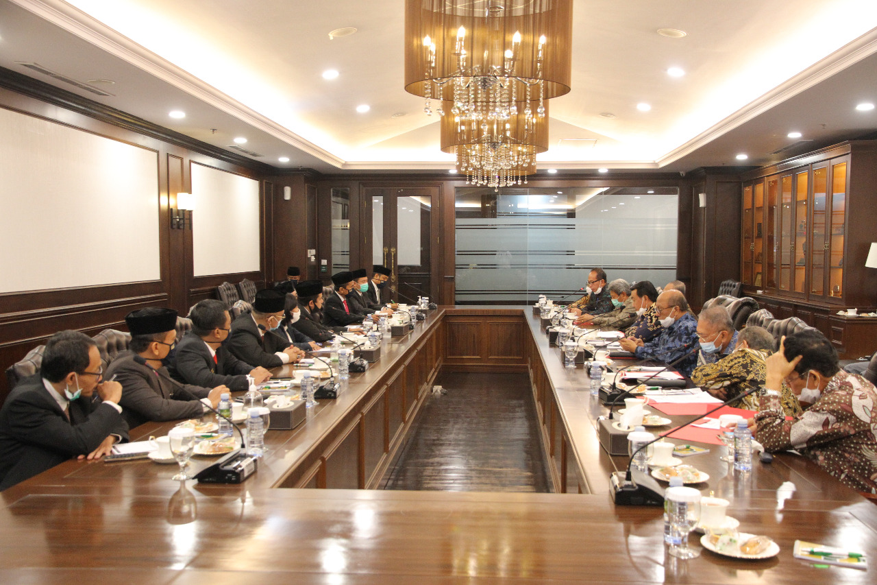 Jakarta – Humas : Ketua Mahkamah Agung Dr. H. M. Syarifuddin, SH.,MH didampingi Wakil Ketua MA Bidang Non Yudisial, para Ketua Kamar serta Sekretaris Mahkamah Agung menerima kunjungan Ketua Dewan Kehormatan Penyelenggara Pemilu Prof. Dr. Muhammad, S.IP, M.Si beserta para anggota DKPP, dalam rangka silahturahmi, pada hari Kamis, 2/7/2020, bertempat diruang rapat Ketua Mahkamah Agung (humas)