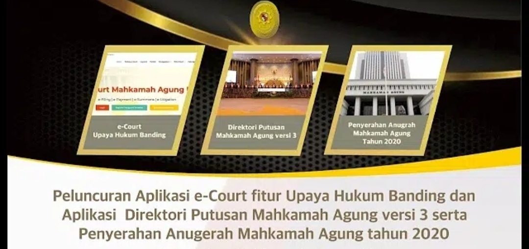 Jakarta – humas : Bertempat di Command Center Mahkamah Agung, Ketua Mahkamah Agung, Dr. M. Syarifuddin, S.H., M.H., meresmikan e-court Tingkat banding, Direktori Putusan Mahkamah Agung Versi 3.0, dan Anugerah Mahkamah Agung Tahun 2020, Rabu (19/8/2020). Acara peresmian tersebut, selain dihadiri oleh pimpinan, Panitera dan Sekretaris Mahkamah Agung, sedangkan hakim agung, pejabat eselon I dan eselon II, pimpinan pengadilan tingkat pertama dan banding dari 4 lingkungan peradilan seluruh Indonesia, serta perwakilan Kementerian dan Lembaga mengikuti secara virtual.